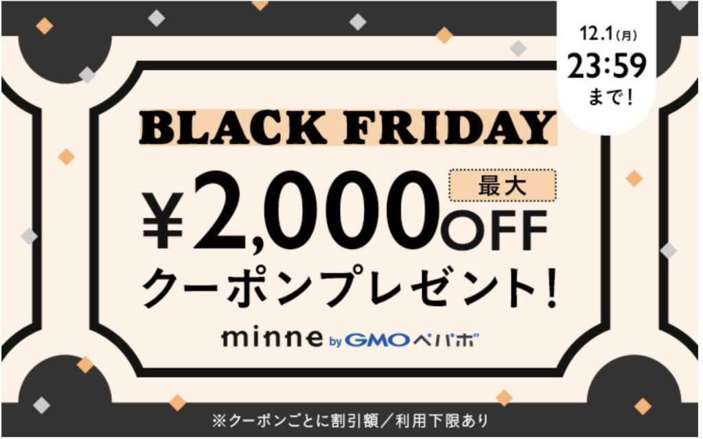 minneさんでは 12/1 までブラックフライデーで2,000円OFF クーポンが使えますので、それと合わせれば通常価格から4,000円引きで手に入れることも可能です!