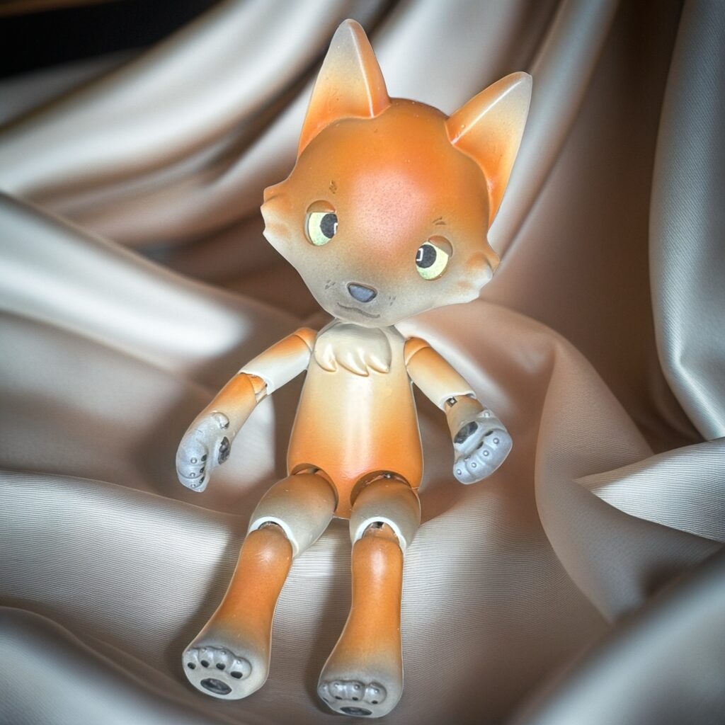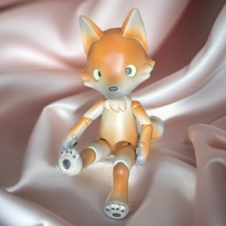 カラーは前回のキツネちゃんより黄色味のあるキツネ色にしました。お耳の先やお鼻周り、手足の先に黒でニュアンスをつけています。